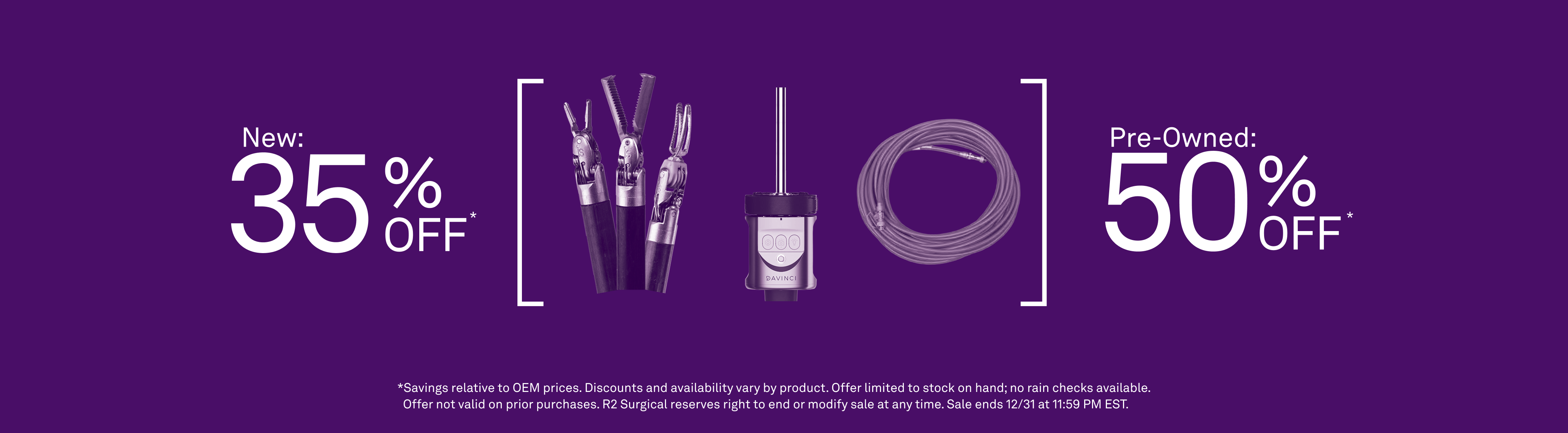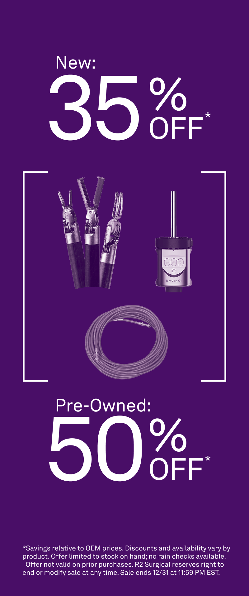Stock up and save with the Year-End Sale, featuring discounts up to 50%* on select da Vinci® instruments, endoscopes, and accessories through 12/31.